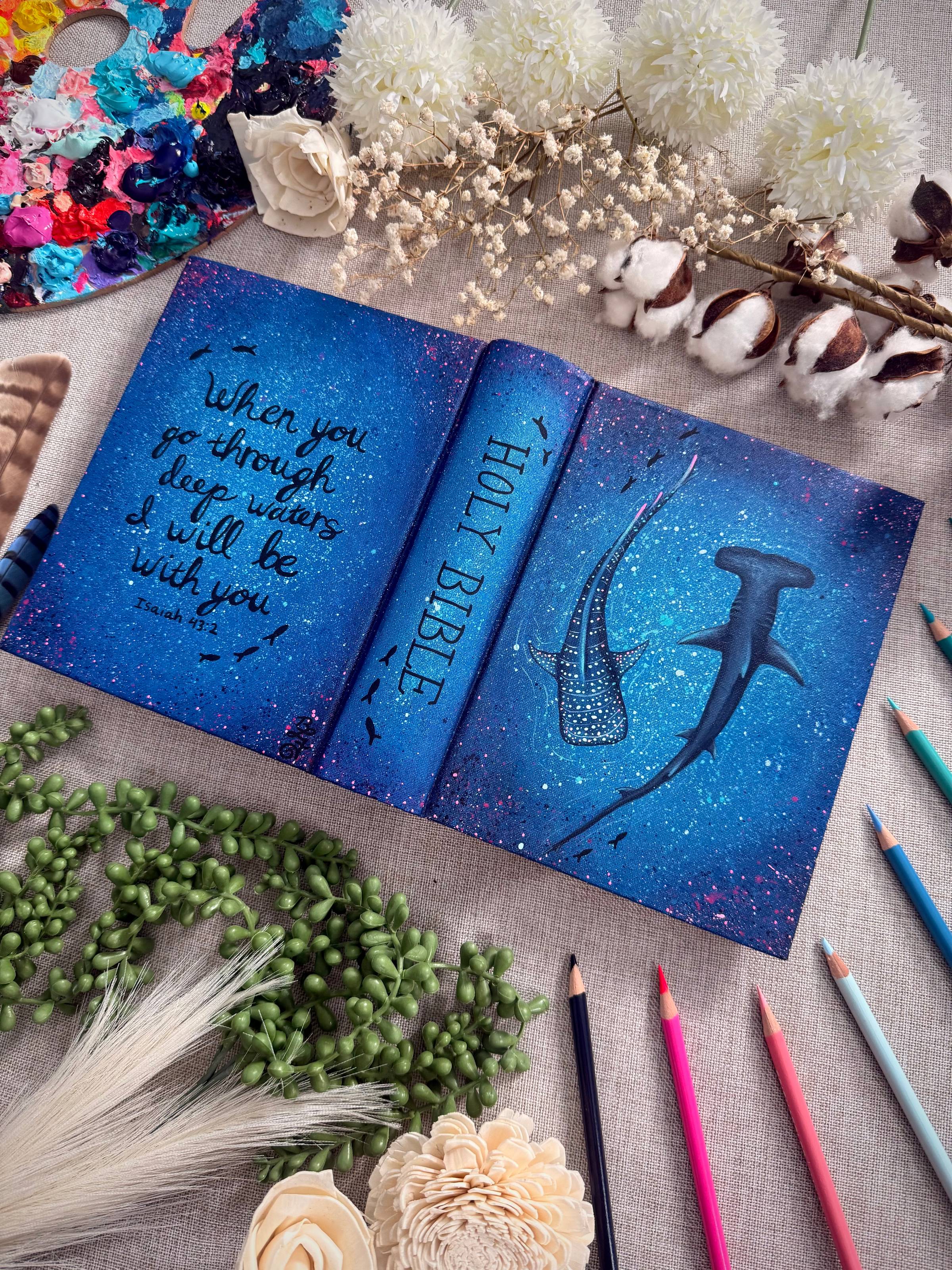 Here are a couple custom painted Bibles I finished this past week