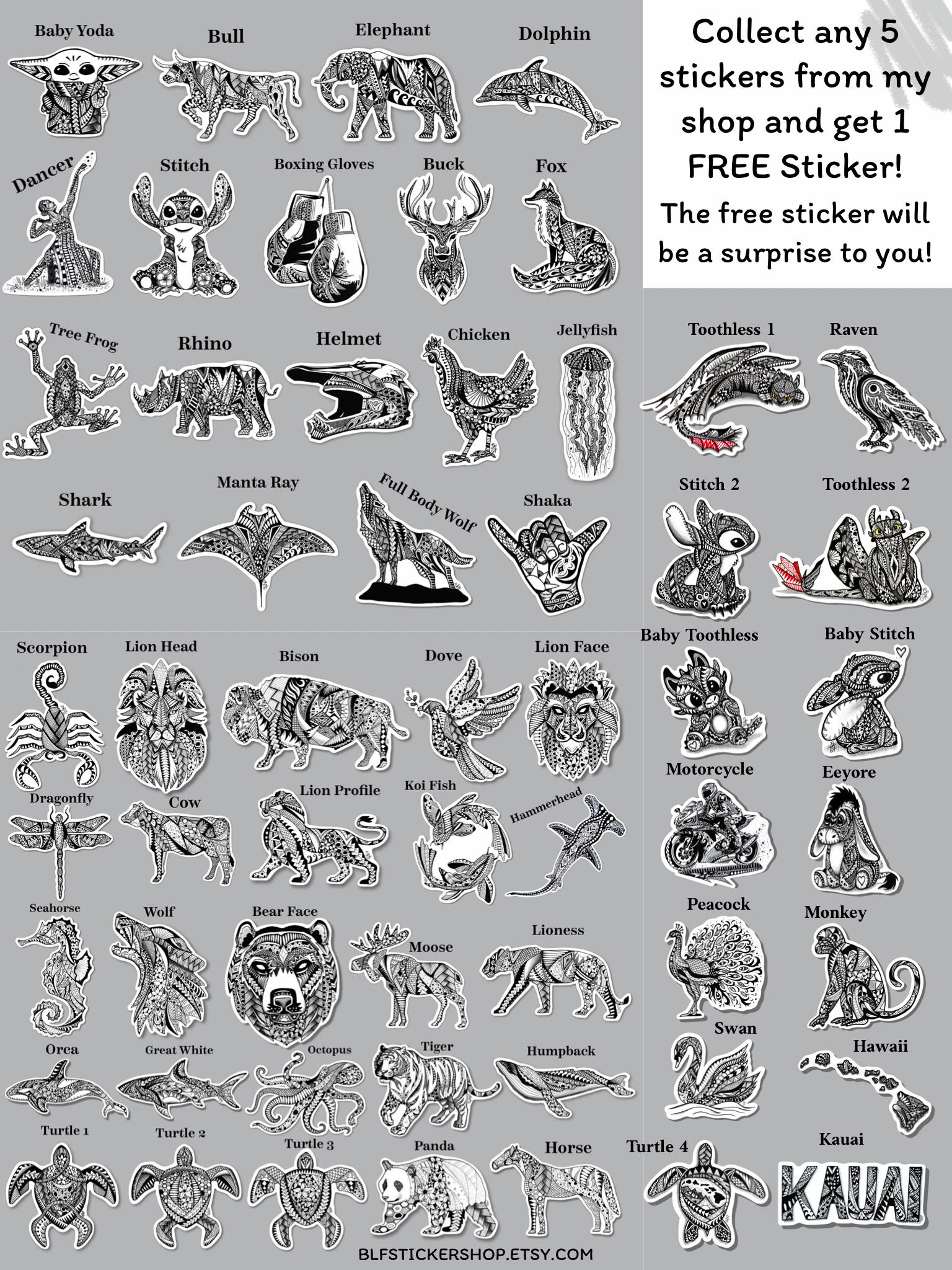 I’ve been having a lot of fun turning my tribal artworks into stickers and have added more of the stickers to my Etsy Shop! Look at all of these fun fellas available to collect 🤩